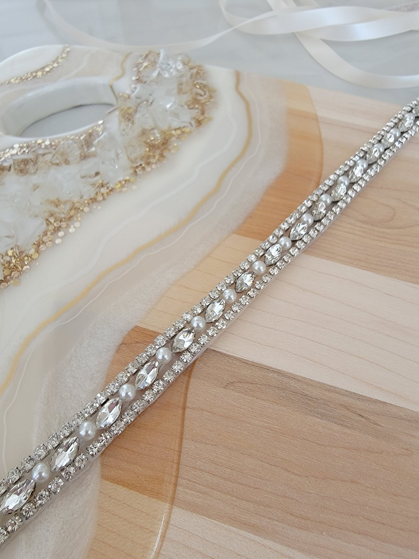OLIVIA | Rhinestone & Pearl Belt | Thin Delicate Bridal Belt