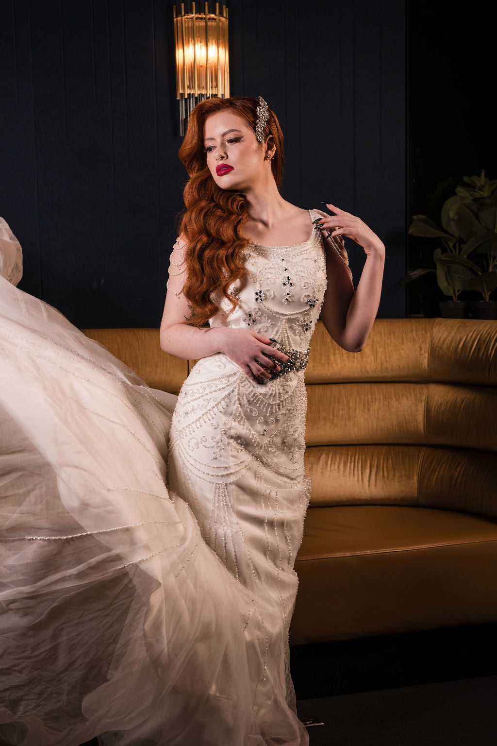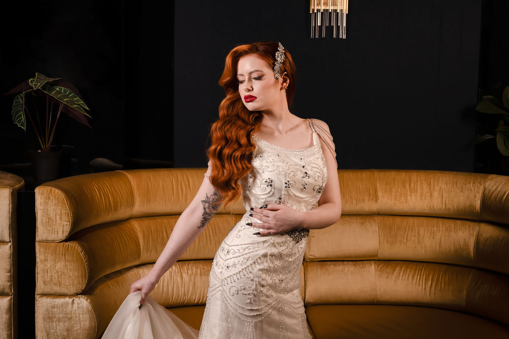 Our Kelowna studio has handcrafted this beautiful hair piece, making it a unique and one-of-a-kind accessory. Our style is classic, chic, and elegant, and we offer a variety of designs that cater to the needs of our fashion-forward brides. At Xoxo Couture Bridal, we believe that every bride deserves to look and feel beautiful on her special day.